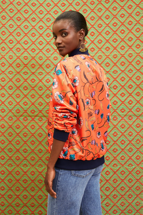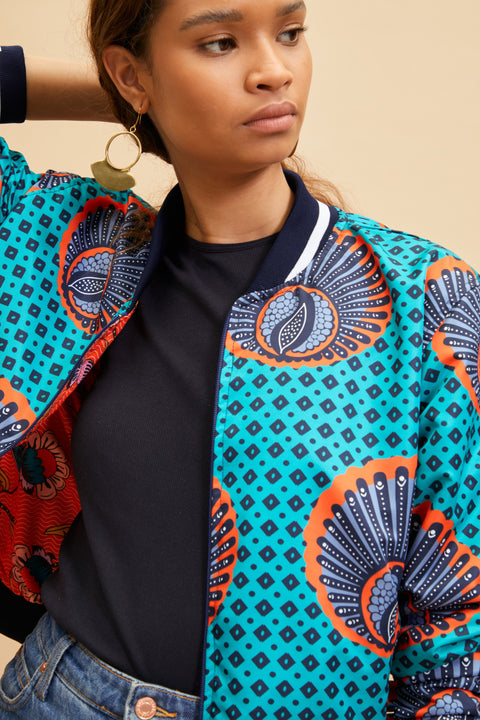 With just one jacket, you have endless possibilities for styling and transforming your look. We created three sets of two colourways for each bomber jacket: Palm/Watermelon, Black Leaf/Blue Leaf and Floral/Peacock